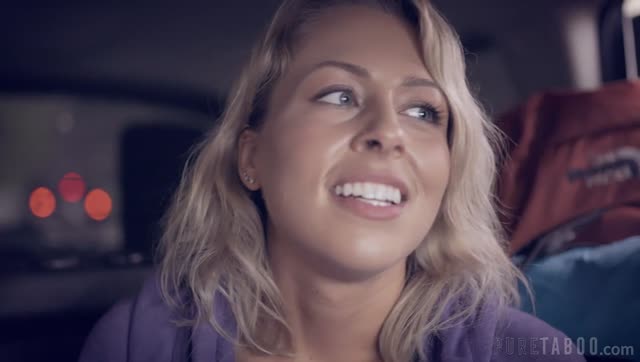 Busty Blonde newbie London Laurent takes on pilot's big dick